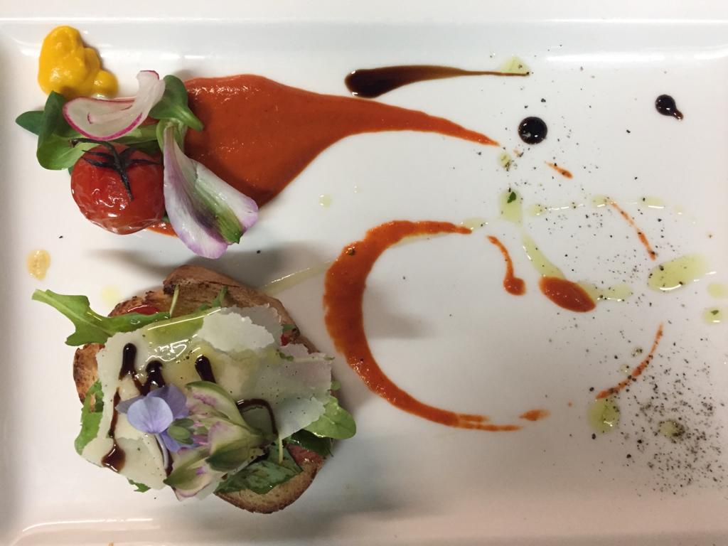 Rinderfiletcarpaccio mit Parmesanblättern und Rucola |